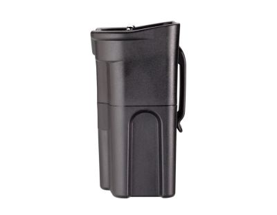 Das Gehäuse des Senders ist mit einem stabilem Gürtelclip ausgestattet. Dadurch lässt sich der handliche Sender am Gürtel komfortabel tragen und man hat beide Hände frei.