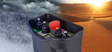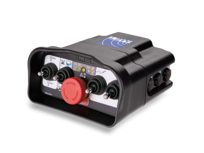 Die Sender der Reihe M880 ARES2-E zeichnen sich durch ein äußerst kompaktes und ergonomisches Design aus. Sie können kundenspezifisch gestaltet und mit Drucktasten, Kippwahlschaltern, Drehwahlschaltern und Potentiometern ausgestattet werden. M880 ARES2 E besitzt einen pilzförmigen STOPP-Schlagtaster Kategorie PL e (ISO 13849:1), SIL 3. Mit allen Empfängern von IMET, auch mit ON/Off- und proportionalen Steuerungen und mit CAN-BUS- e CAN-OPEN-Ausgängen kombinierbar. Die Codierung der Funksignale und die 30 verfügbaren Übertragungskanäle schließen die Möglichkeit von Störungen hinsichtlich anderer Geräte aus. M880 ARES2 E besteht aus besonders stoßfestem Material.