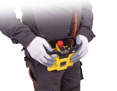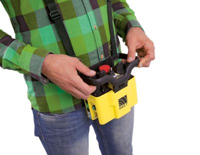 Durch den praktischen Schultergurt und Gürtelclip hat der Bediener die Hände vollkommen frei.