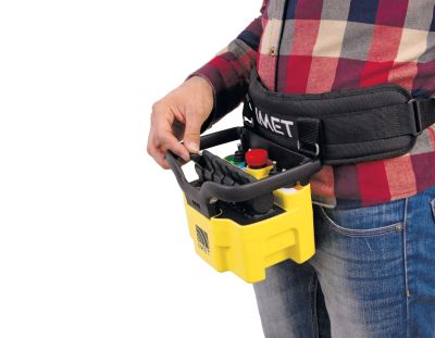 Durch den praktischen Schultergurt hat der Bediener die Hände vollkommen frei.